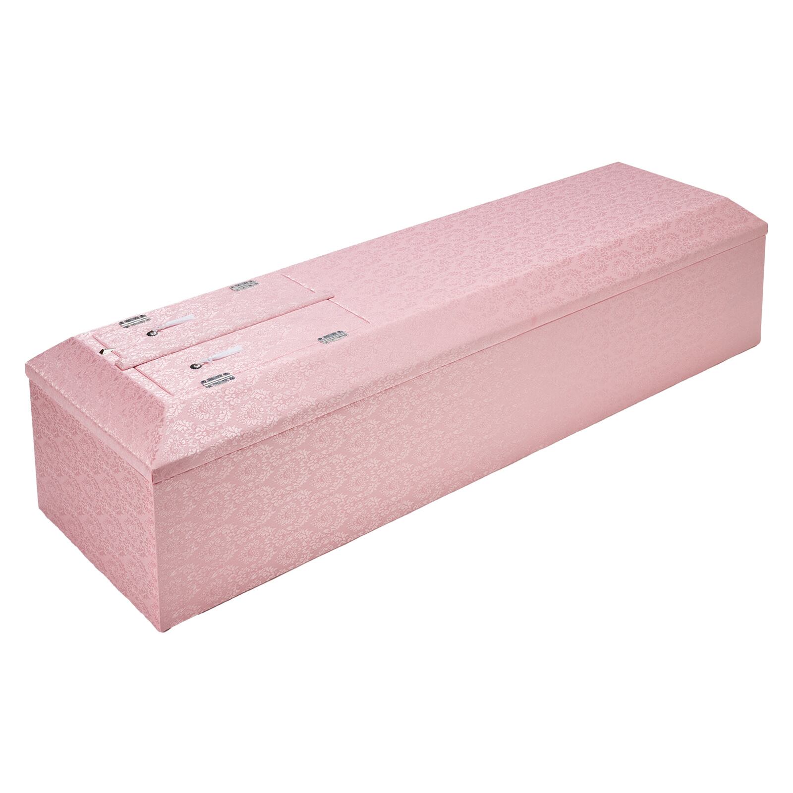伝統的な日本の葬儀文化に基づいて設計された山型棺です。木製の本体に上質な布を丁寧に張り込み、落ち着いた紫色の布地に花柄模様を施すことで、シンプルでありながら厳かな雰囲気を演出します。サイズは長さ190cm、幅55cm、高さ46cmの標準仕様で、一般的な体格の方に適しており、直葬・家族葬・密葬など幅広い葬儀形式に対応可能です。重量は25kgと安定感があり、日本国内で製造された信頼性の高い品質を誇ります。大切な方を丁重に送り出すための、安心と品位を兼ね備えた棺です。
